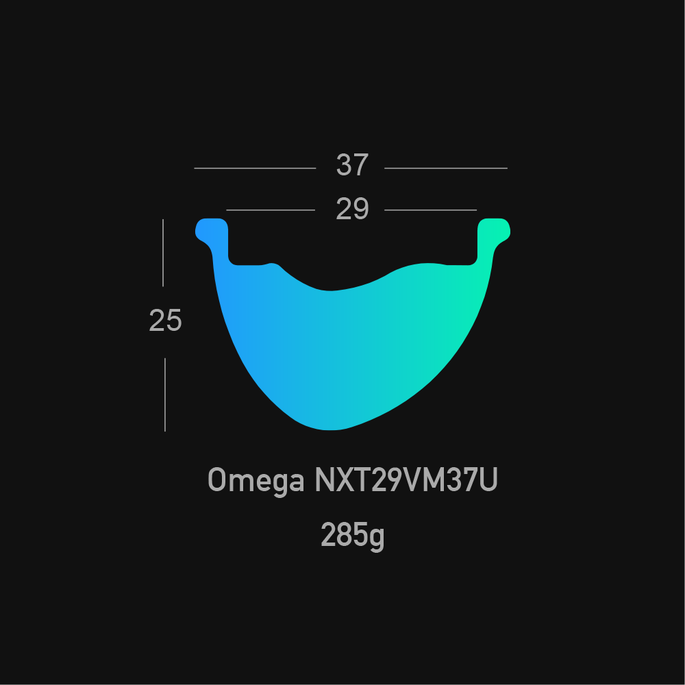 On the premise of ensuring that the impact test reaches 70J (Premium Edition XC rim test standard), we continue to explore and adjust the stacking manufacturing technology, and finally successfully completed the development of the Omega 37 rim. The weight is only 285g. Comparing to the rim products in the same internal width, such as the Premium Edition NXT29UML34 and NXT29UM35 rims in weight of 325g, Omega 37 in weight 285g greatly innovates again. This is a huge improvement. TEST VIDEO